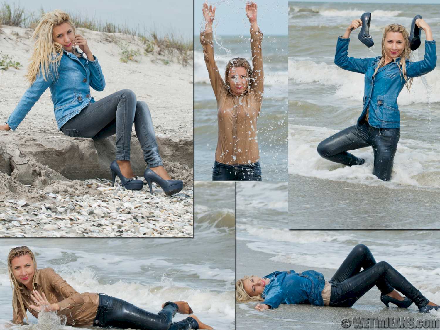 We produced wetlook scenes in many places, but after all these years, the sea is still the best place, mainly because the girls are always more relaxed and happier to get wet on a beach. AnnaMaria's face shows us perfectly how happy she was to get her jeans and denim jacket wet for us that day. Enjoy! 😉